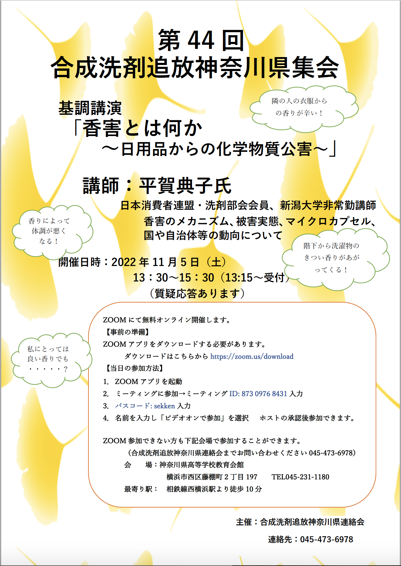 2022年11月5日 合成洗剤追放神奈川県連絡会 [第44回 合成洗剤追放神奈川県集会]基調講演