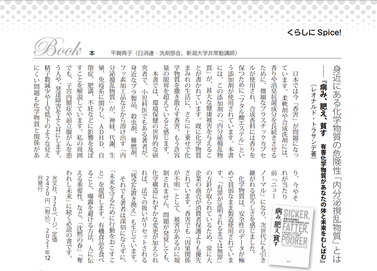 ■消費者リポート2022年8月20日号(No.1660)『病み、肥え、貧す 有害化学物質があなたの体と未来をむしばむ』書評 *記事