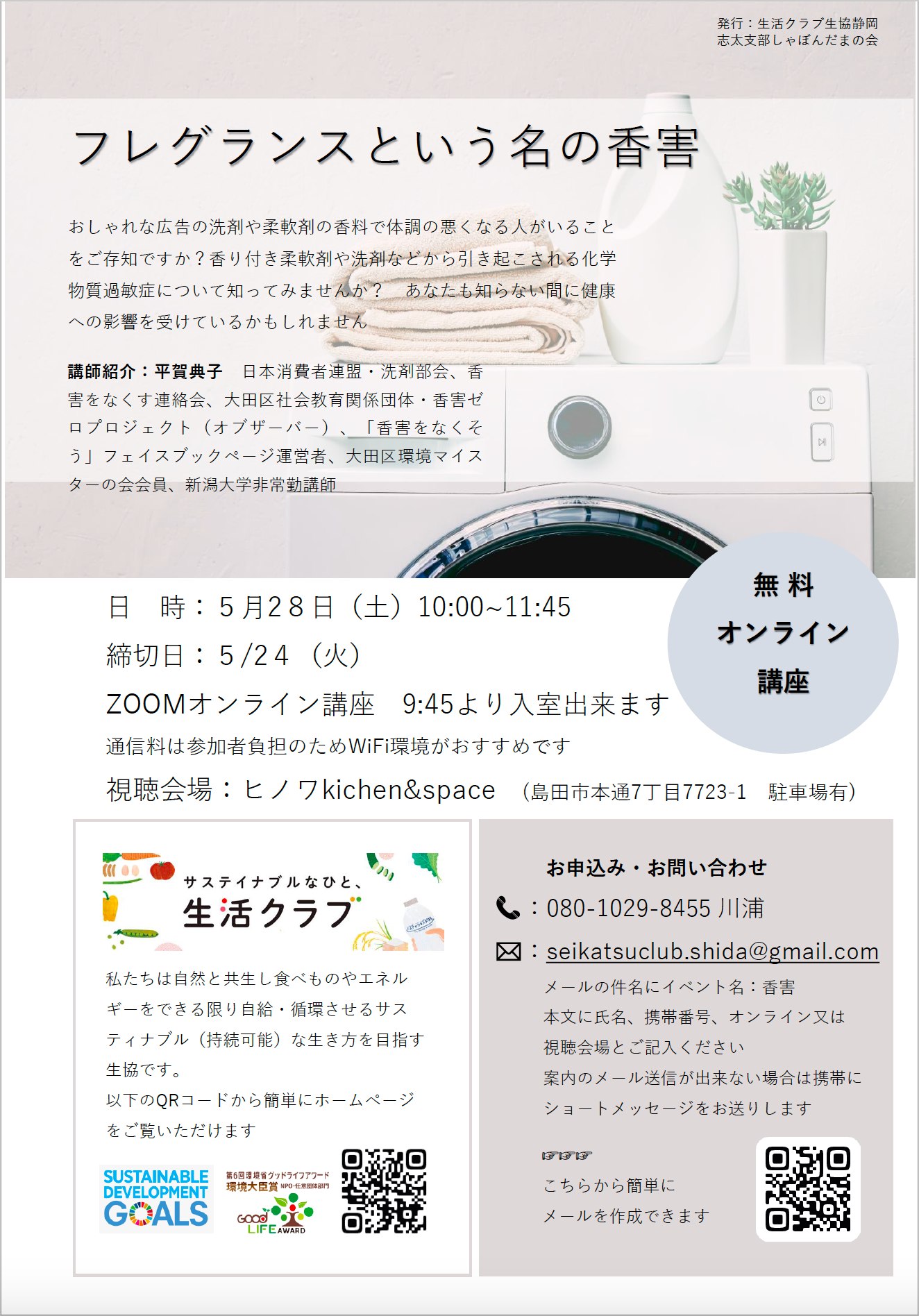 「香害 ~柔軟剤のマイクロカプセル コロナと消毒~」 *イベント告知