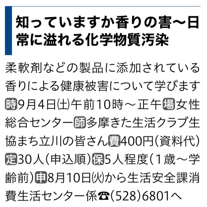 「香害は公害~見直そう毎日の暮らし方」 *イベント告知